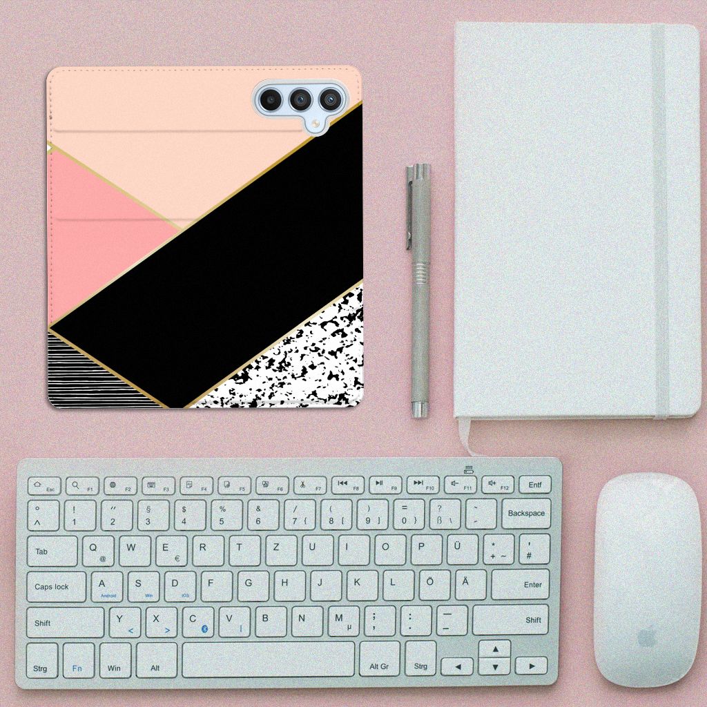 Samsung Galaxy A54 Stand Case Zwart Roze Vormen