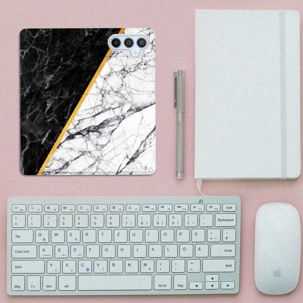 Samsung Galaxy A54 Standcase Marmer Wit Zwart - Origineel Cadeau Man