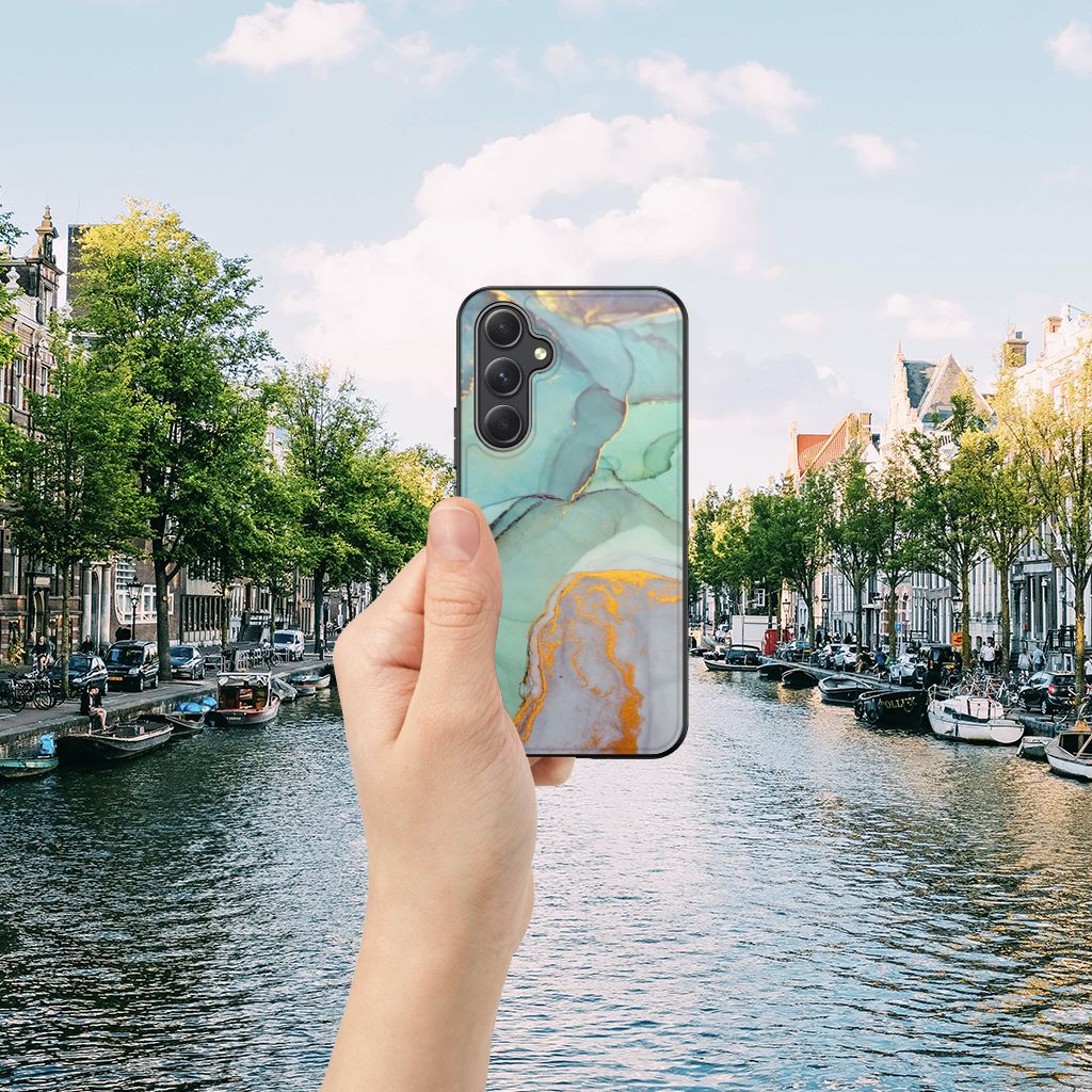 Samsung Galaxy A54 Standcase Marmer Zwart - Origineel Cadeau Vader