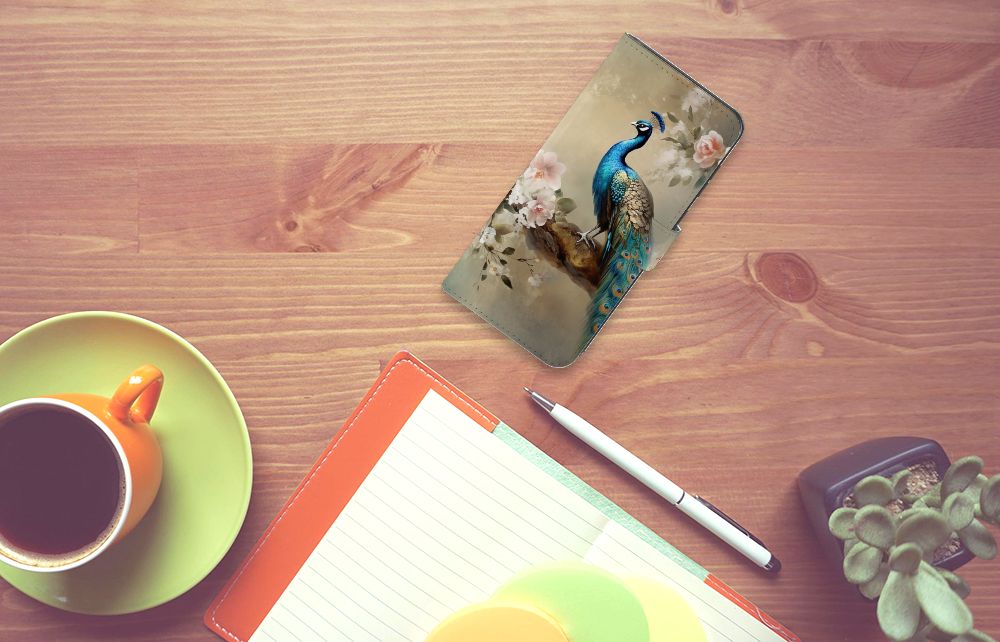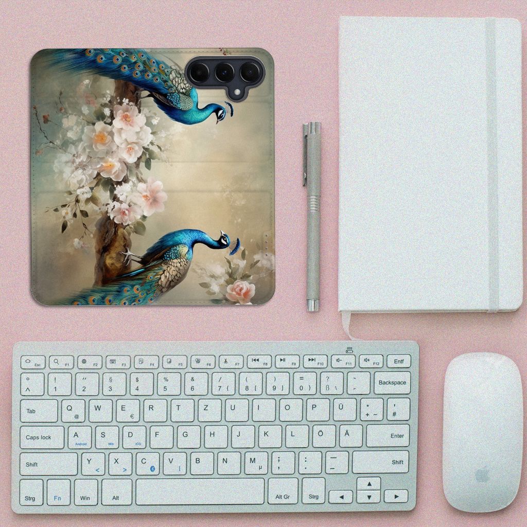 Telefoonhoesje met Pasjes voor Samsung Galaxy A55 Vintage Pauwen