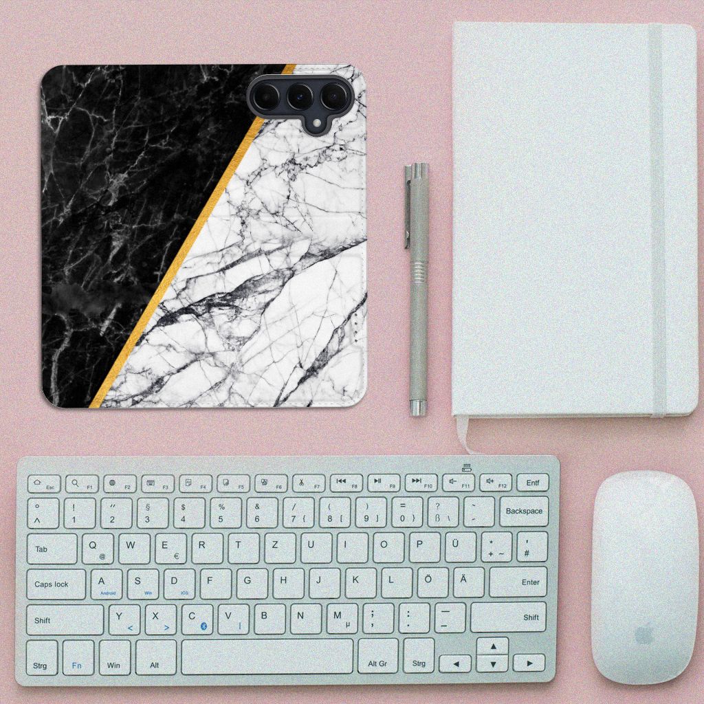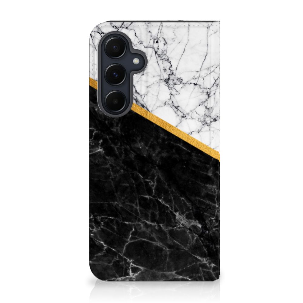 Samsung Galaxy A55 Standcase Marmer Wit Zwart - Origineel Cadeau Man