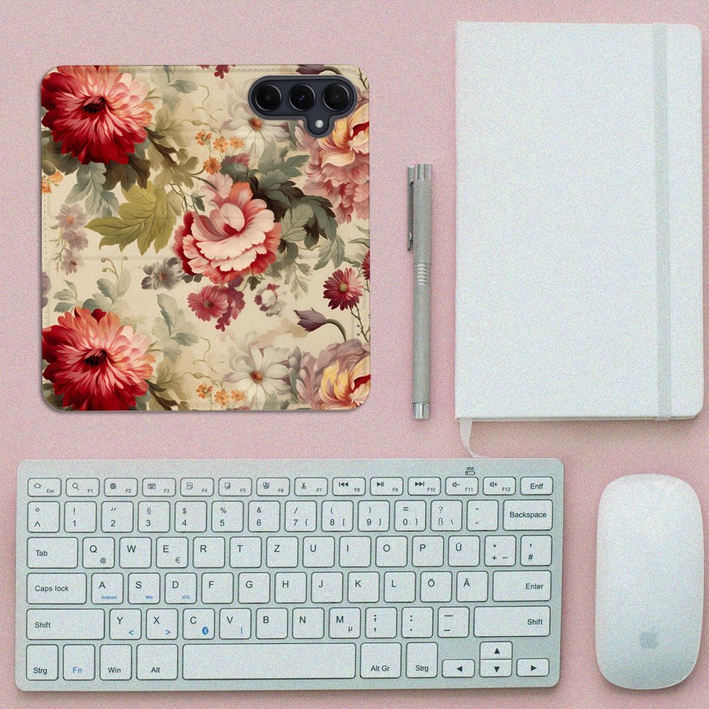 Samsung Galaxy A55 Hoesje Beige Flowers