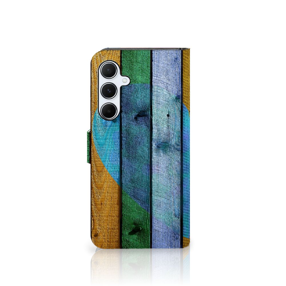 Samsung Galaxy A55 Book Style Case Wood Heart - Cadeau voor je Vriend