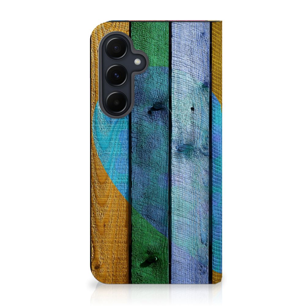 Samsung Galaxy A55 Book Wallet Case Wood Heart - Cadeau voor je Vriend