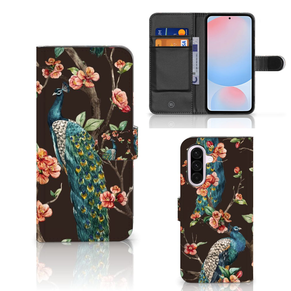 Samsung Galaxy A56 Telefoonhoesje met Pasjes Pauw met Bloemen