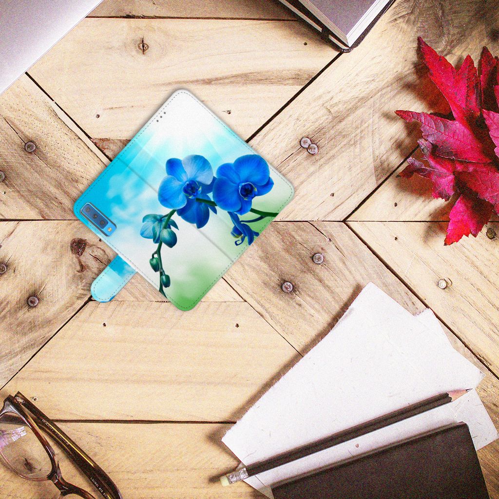 Samsung Galaxy A7 (2018) Hoesje Orchidee Blauw - Cadeau voor je Moeder