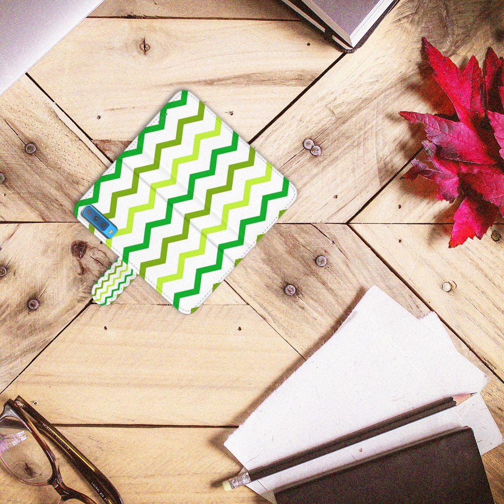Samsung Galaxy A7 (2018) Telefoon Hoesje Zigzag Groen