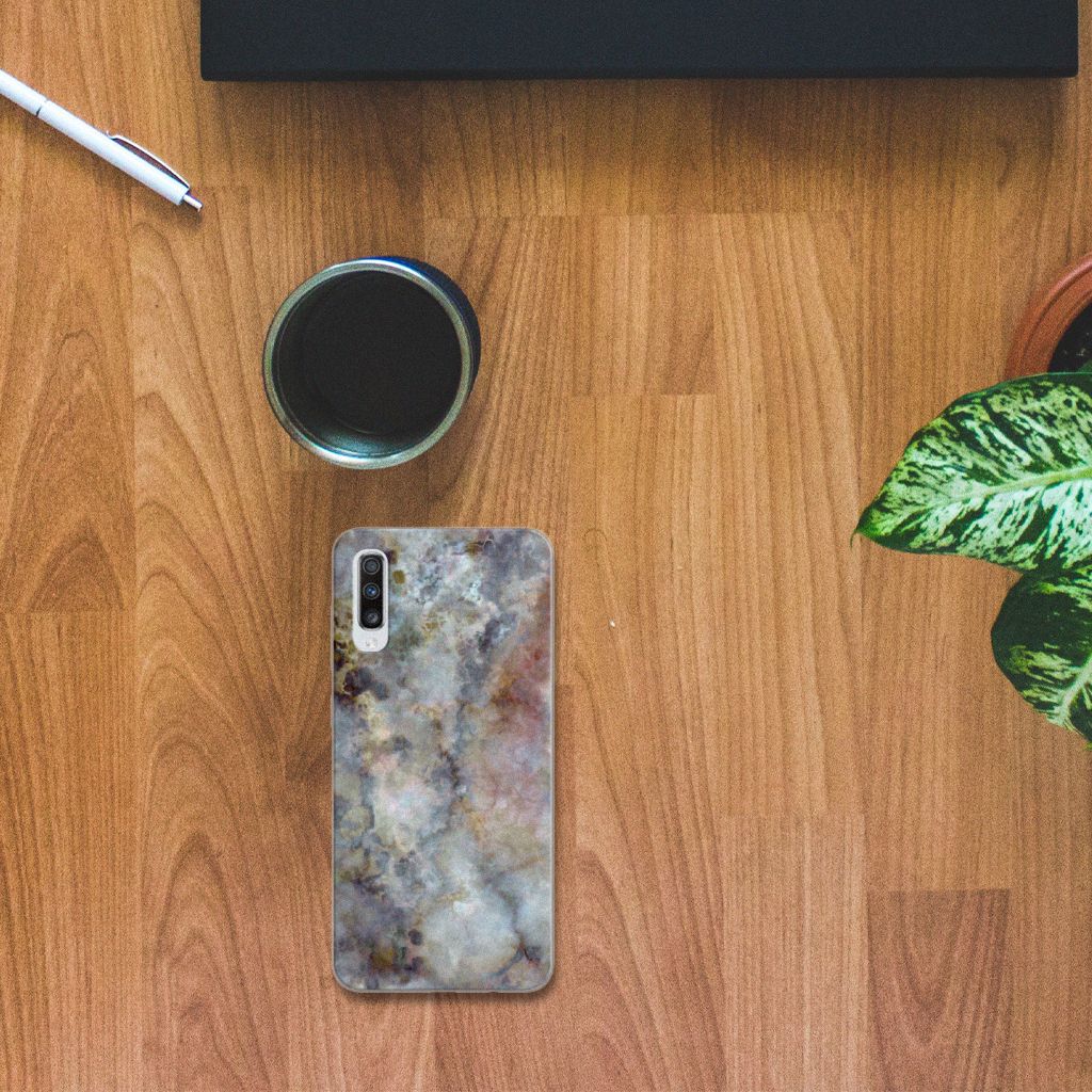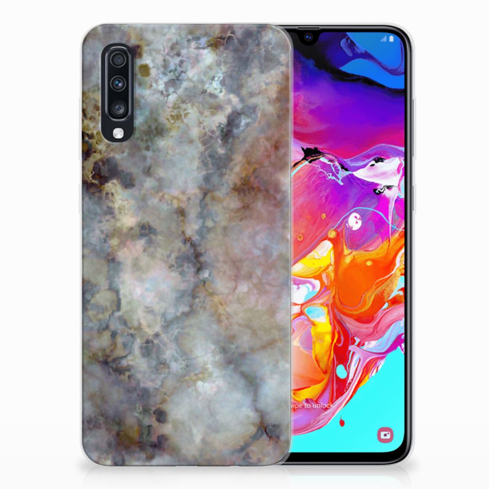 Samsung Galaxy A70 TPU Siliconen Hoesje Marmer Grijs