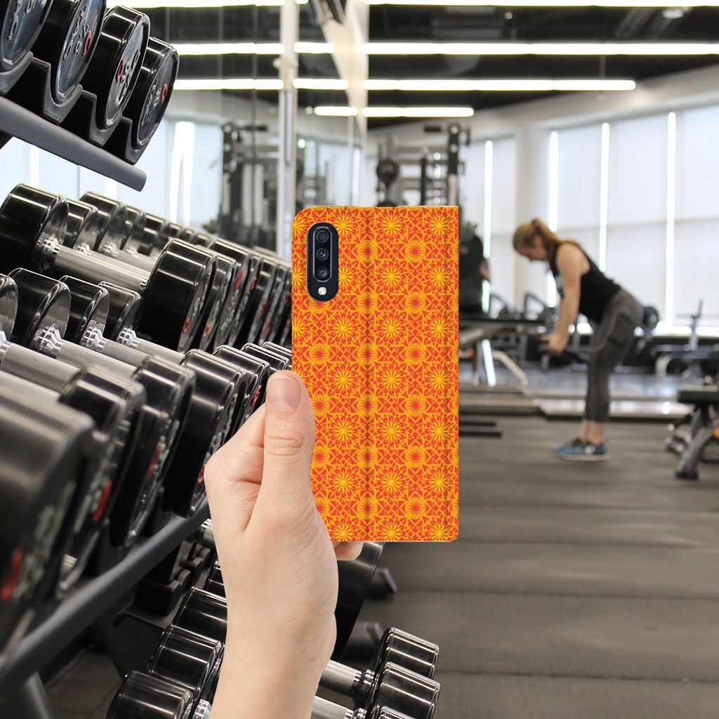 Samsung Galaxy A70 Hoesje met Magneet Batik Oranje