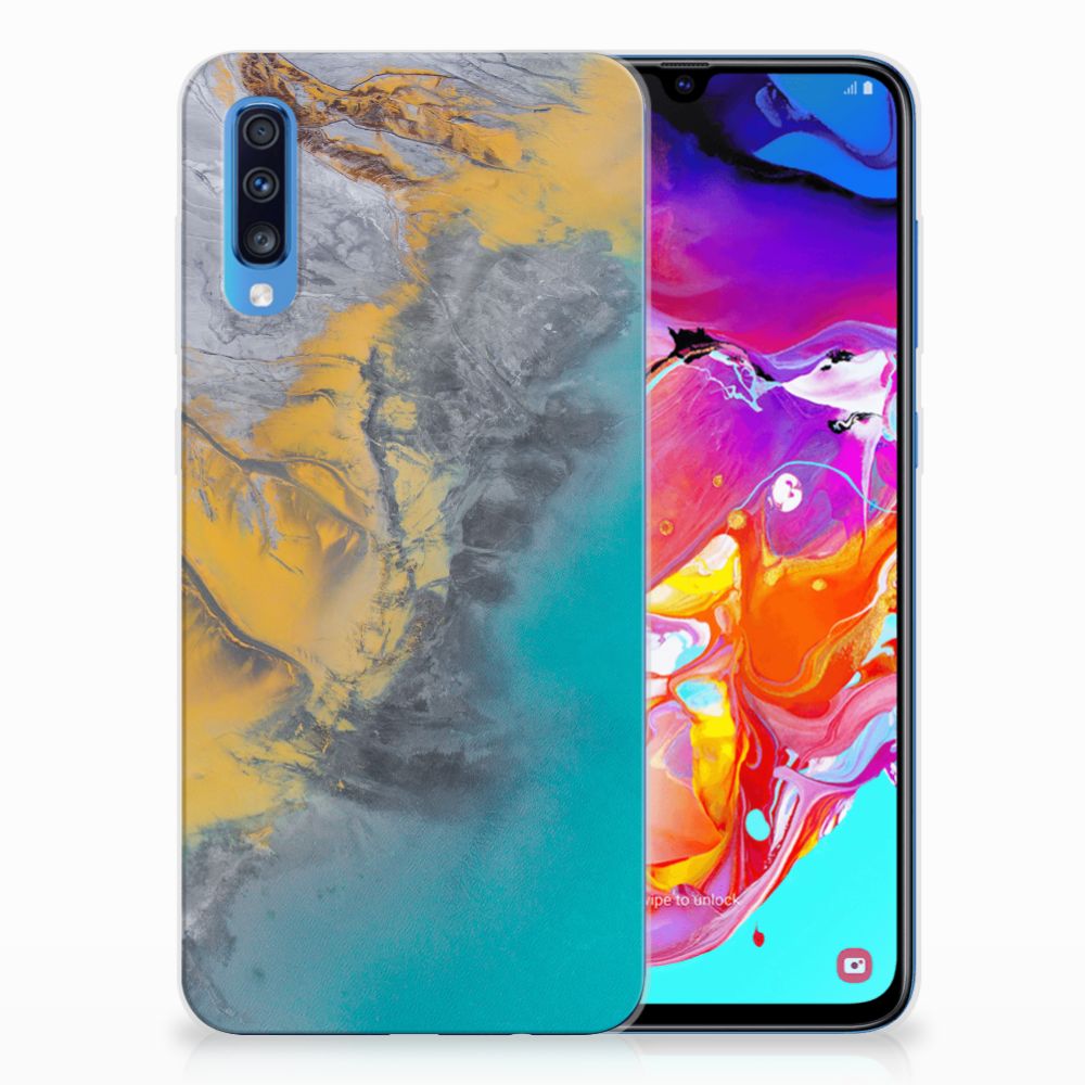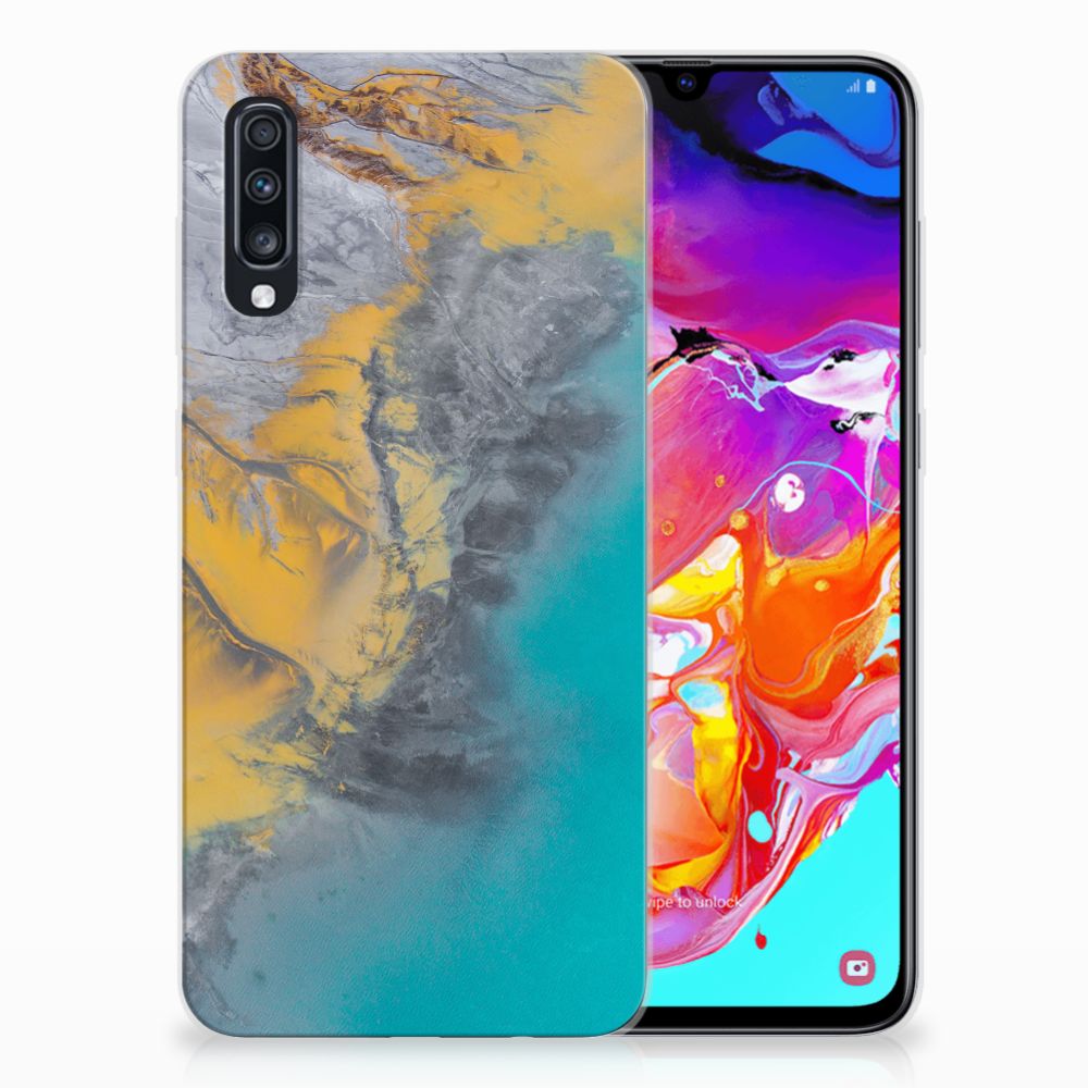Samsung Galaxy A70 TPU Siliconen Hoesje Marble Blue Gold