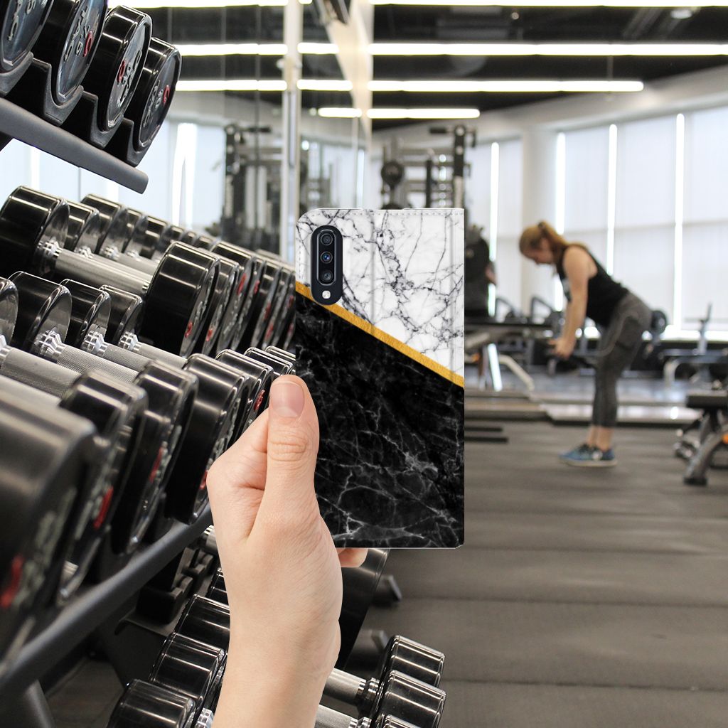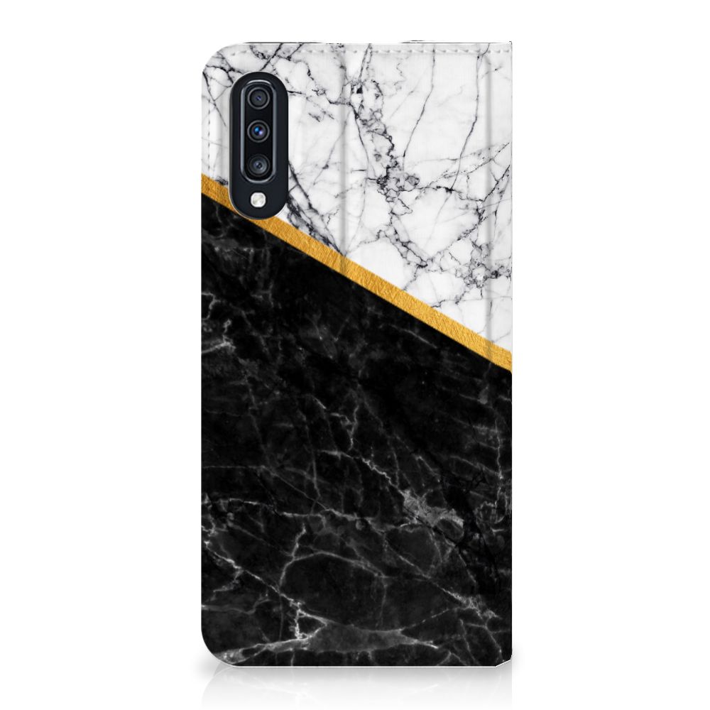 Samsung Galaxy A70 Standcase Marmer Wit Zwart - Origineel Cadeau Man
