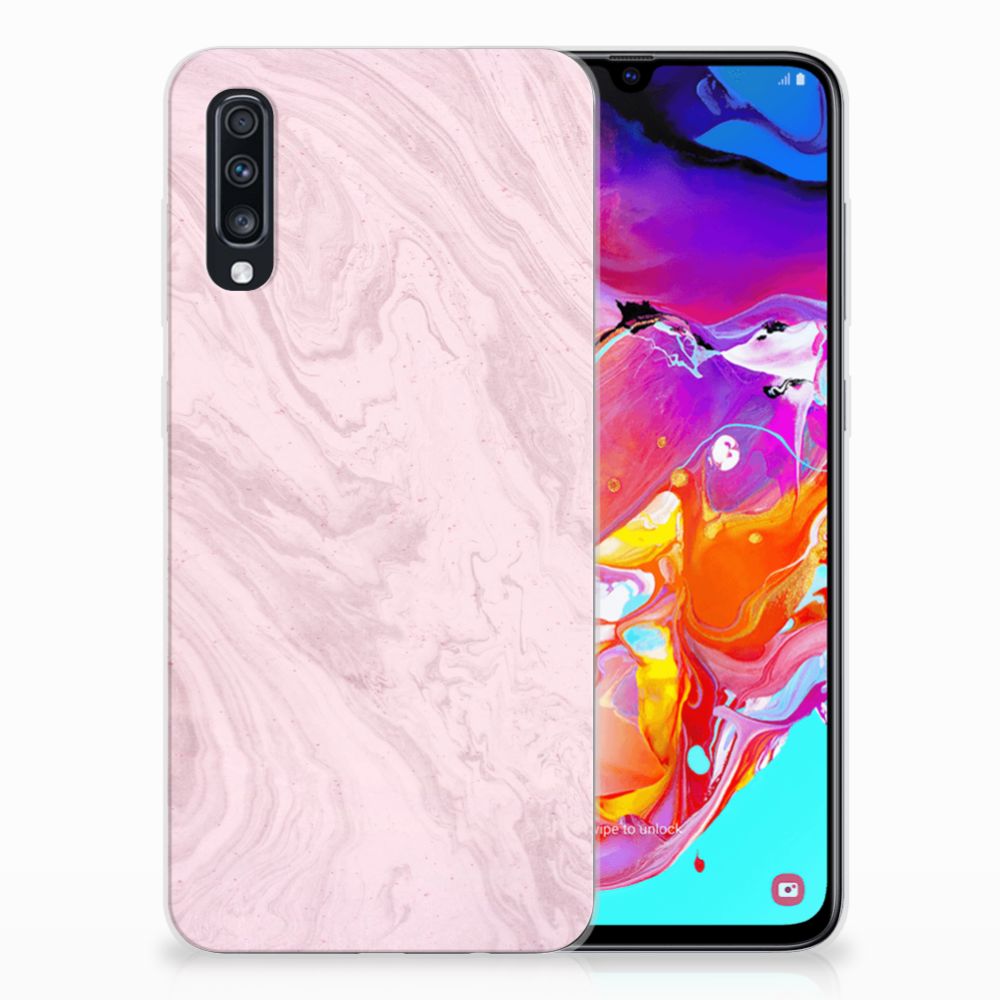 Samsung Galaxy A70 TPU Siliconen Hoesje Marble Pink - Origineel Cadeau Vriendin