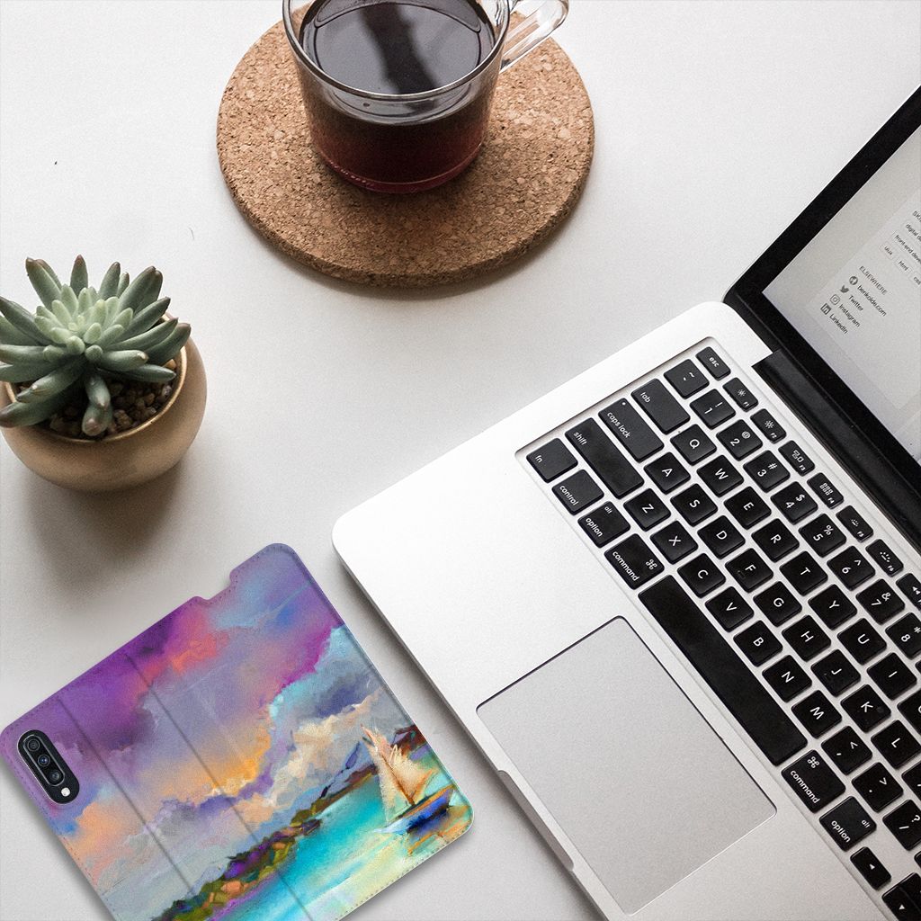 Samsung Galaxy A70 Book Case Abstract Green Blue