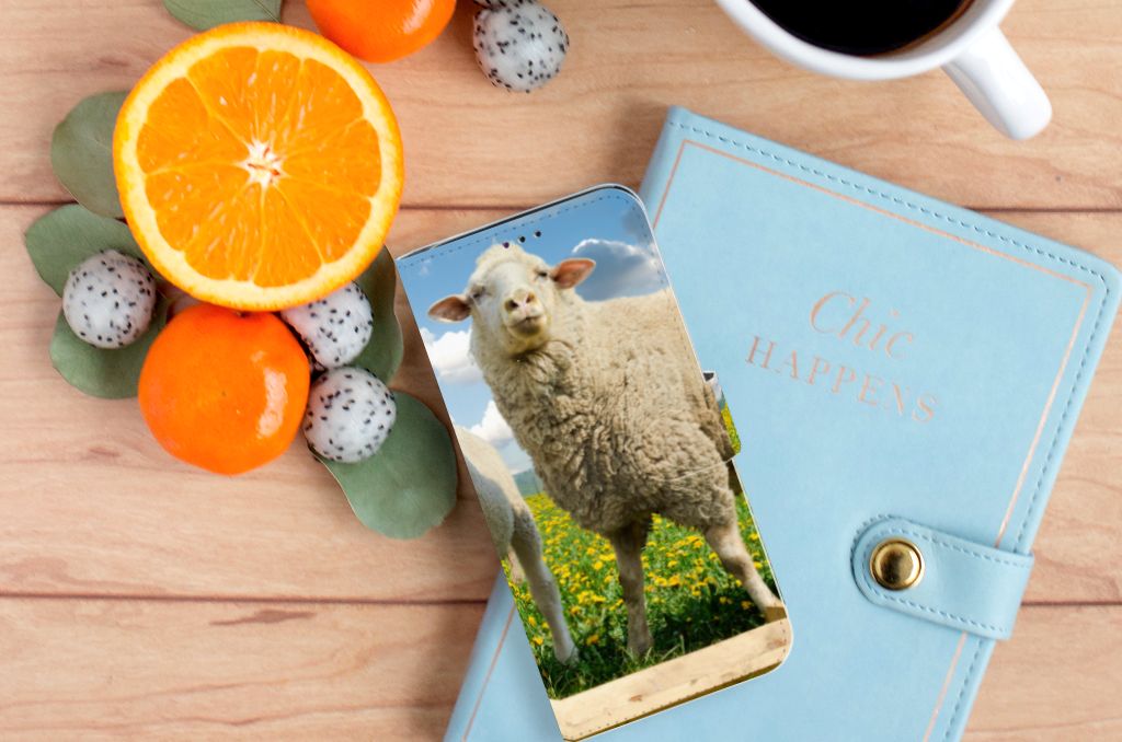 Samsung Galaxy A70 Telefoonhoesje met Pasjes Schaap en Lammetje