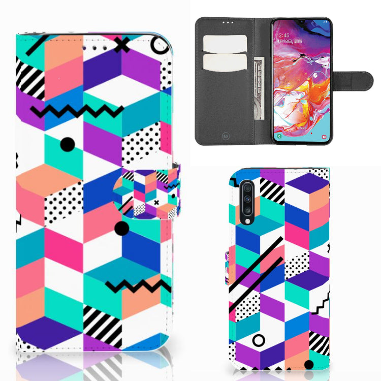 Samsung Galaxy A70 Book Case Blokken Kleurrijk