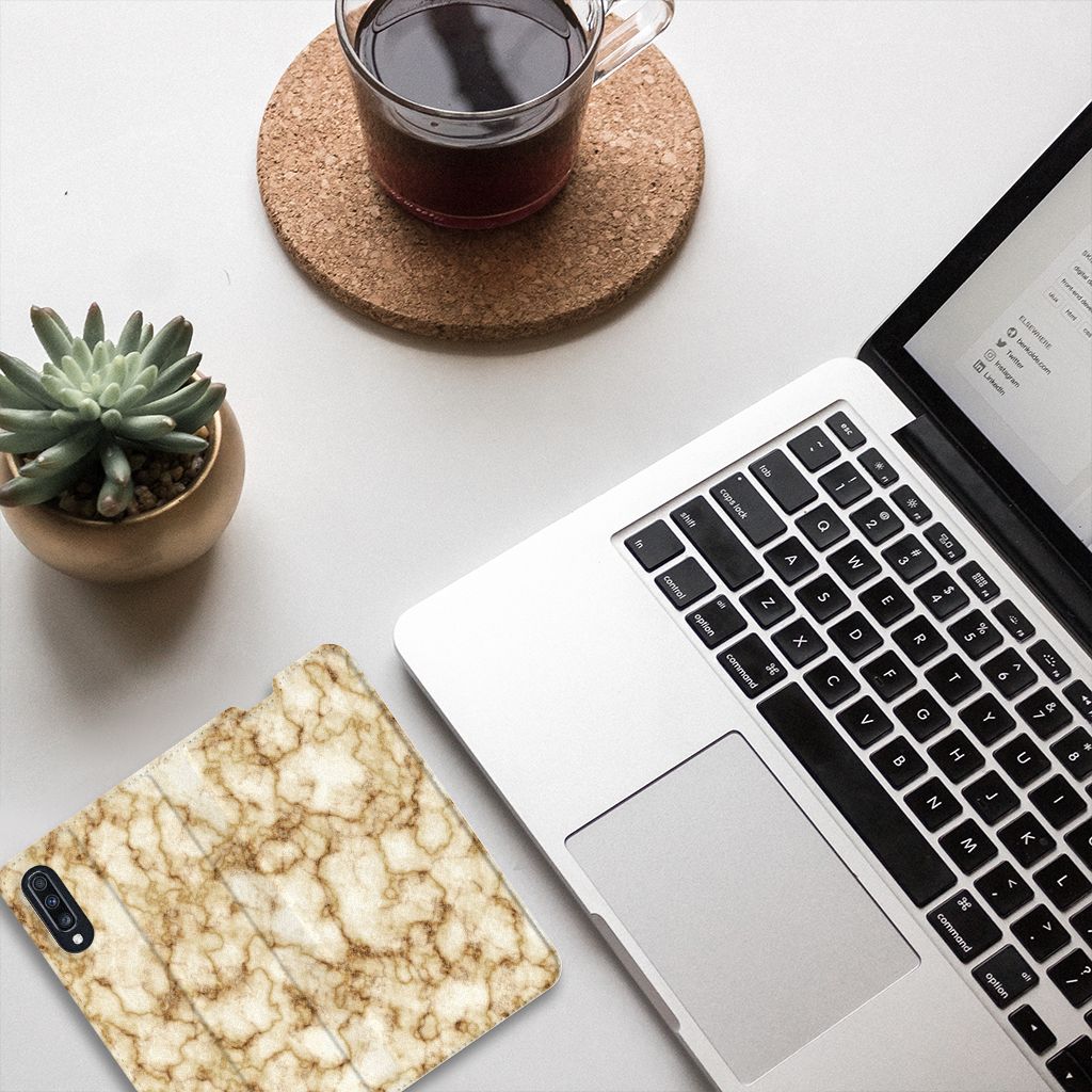 Samsung Galaxy A70 Standcase Marmer Goud