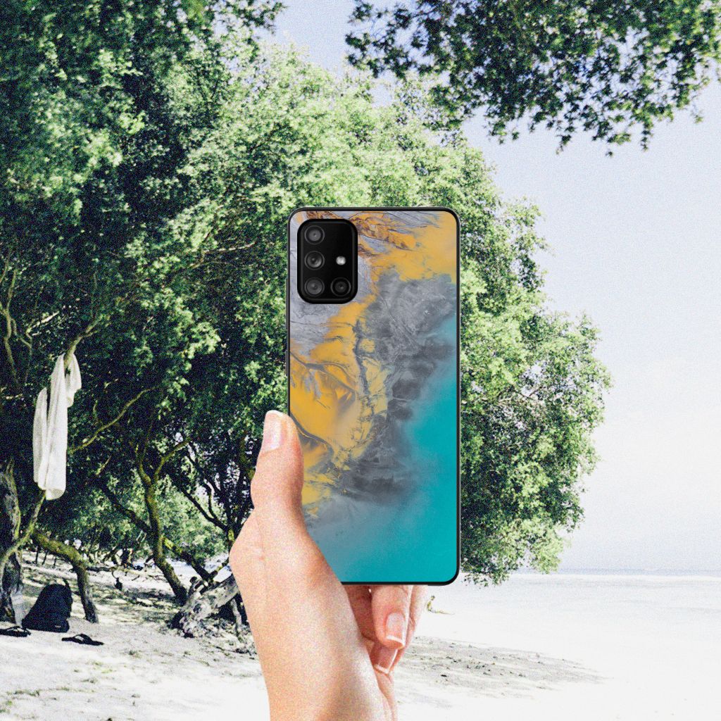Samsung Galaxy A71 Marmeren Print Telefoonhoesje Marble Blue Gold
