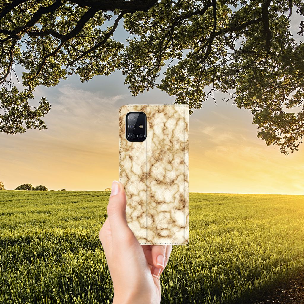 Samsung Galaxy A71 Standcase Marmer Wit Zwart - Origineel Cadeau Man