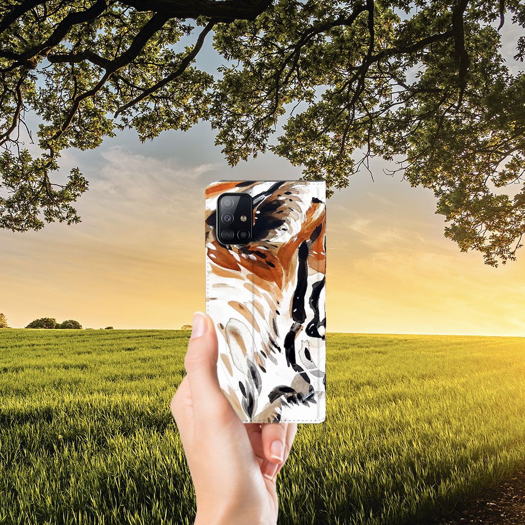 Bookcase Samsung Galaxy A71 Watercolor Tiger