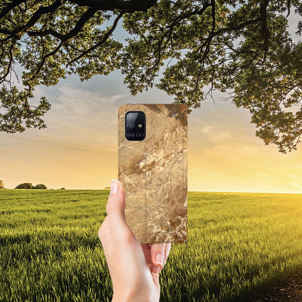 Samsung Galaxy A71 Bookcase Marmer Bruin
