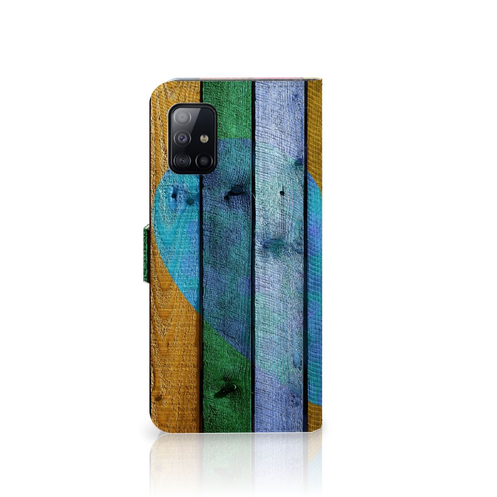 Samsung Galaxy A71 Book Style Case Wood Heart - Cadeau voor je Vriend