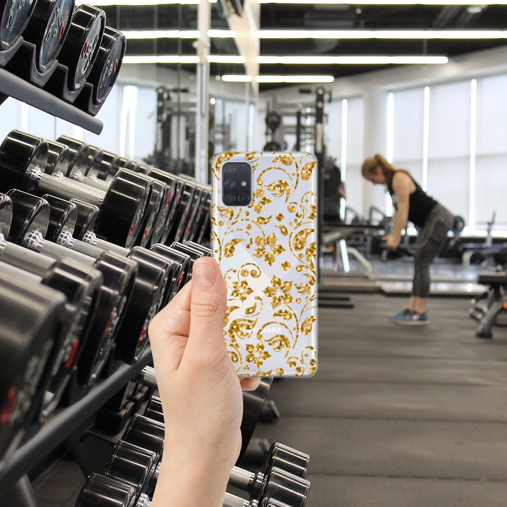 Samsung Galaxy A71 TPU Case Gouden Bloemen