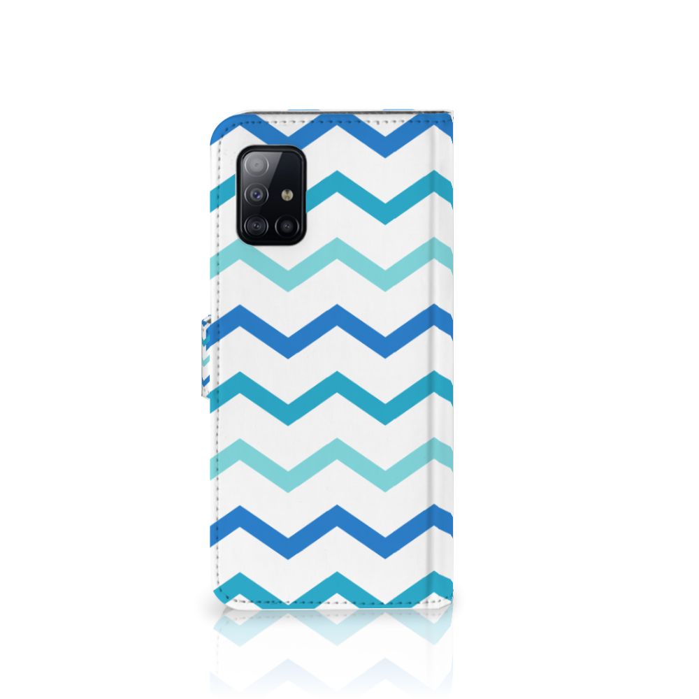 Samsung Galaxy A71 Telefoon Hoesje Zigzag Blauw