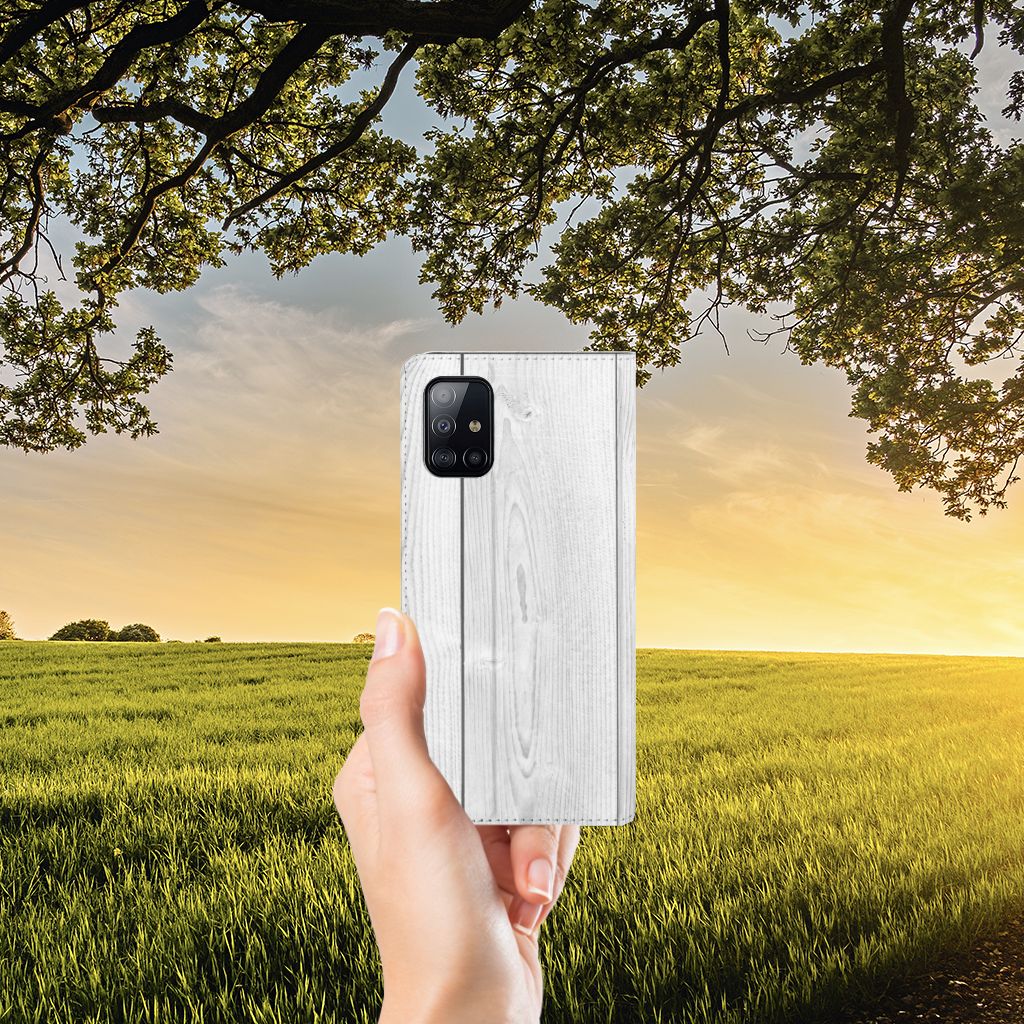 Samsung Galaxy A71 Book Wallet Case White Wood