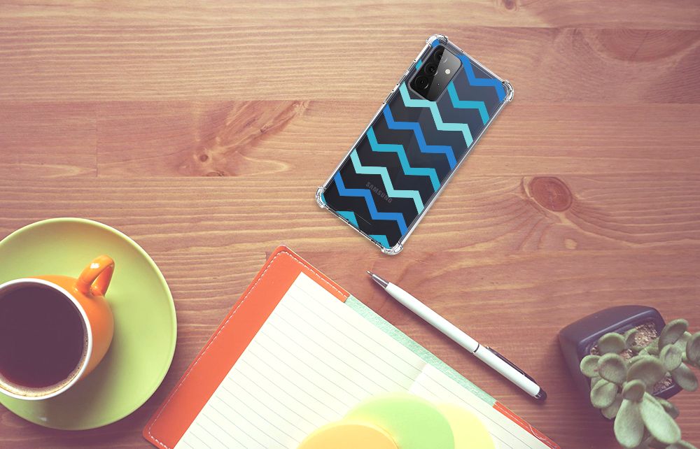 Samsung Galaxy A72 4G/5G Doorzichtige Silicone Hoesje Zigzag Blauw