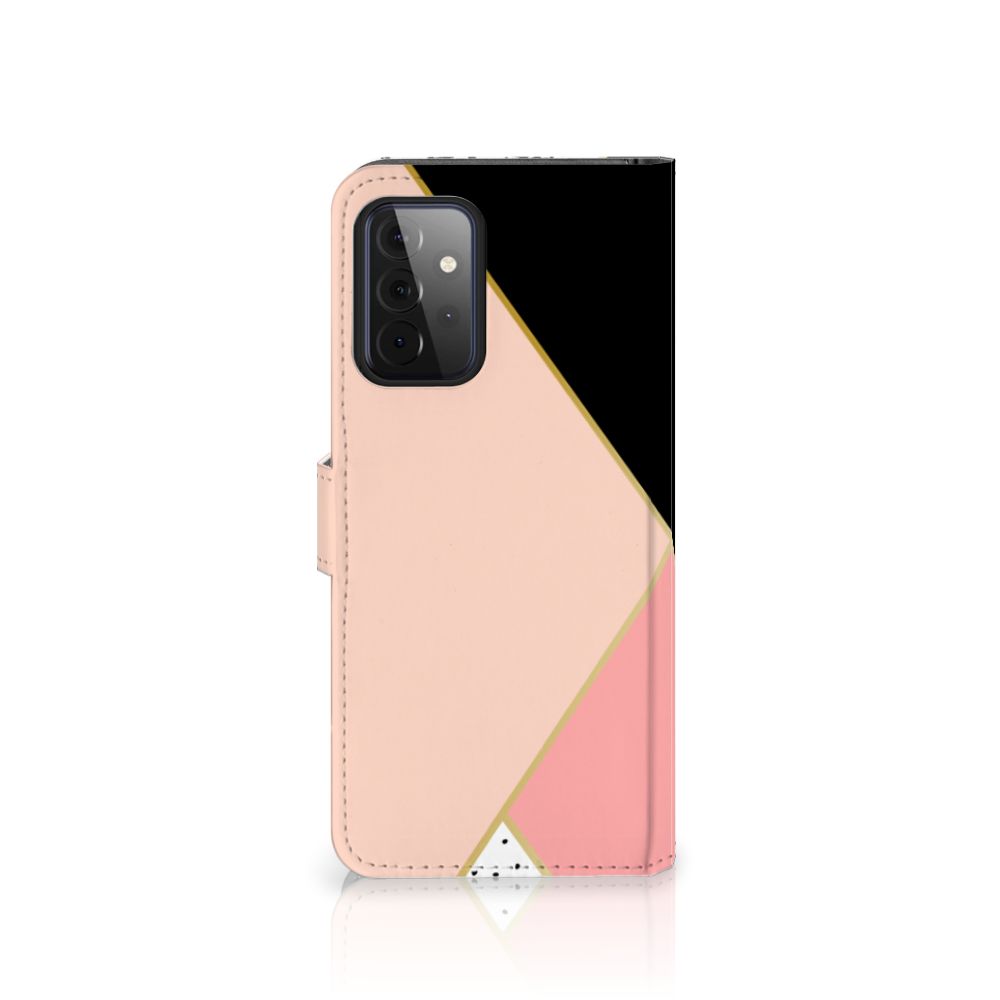 Samsung Galaxy A72 Book Case Zwart Roze Vormen