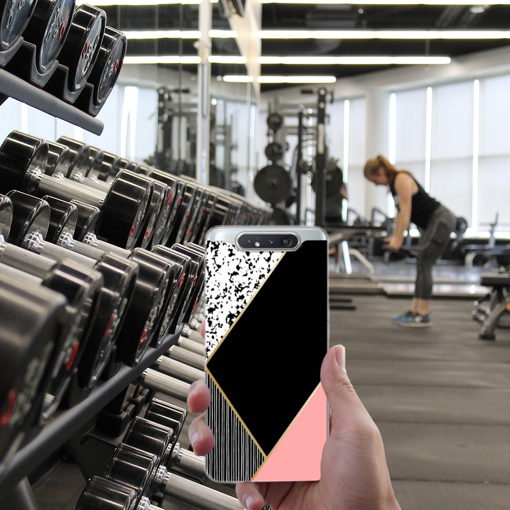 Samsung Galaxy A80 TPU Hoesje Zwart Roze Vormen
