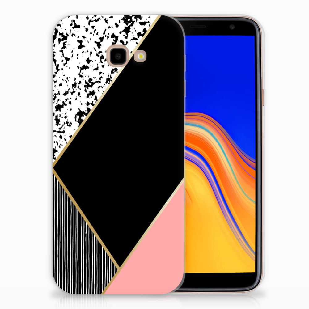 Samsung Galaxy J4 Plus (2018) TPU Hoesje Zwart Roze Vormen