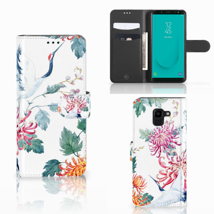 Samsung Galaxy J6 2018 Telefoonhoesje met Pasjes Bird Flowers