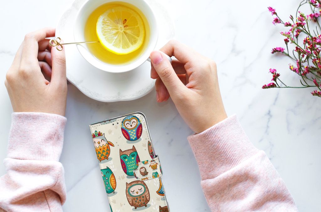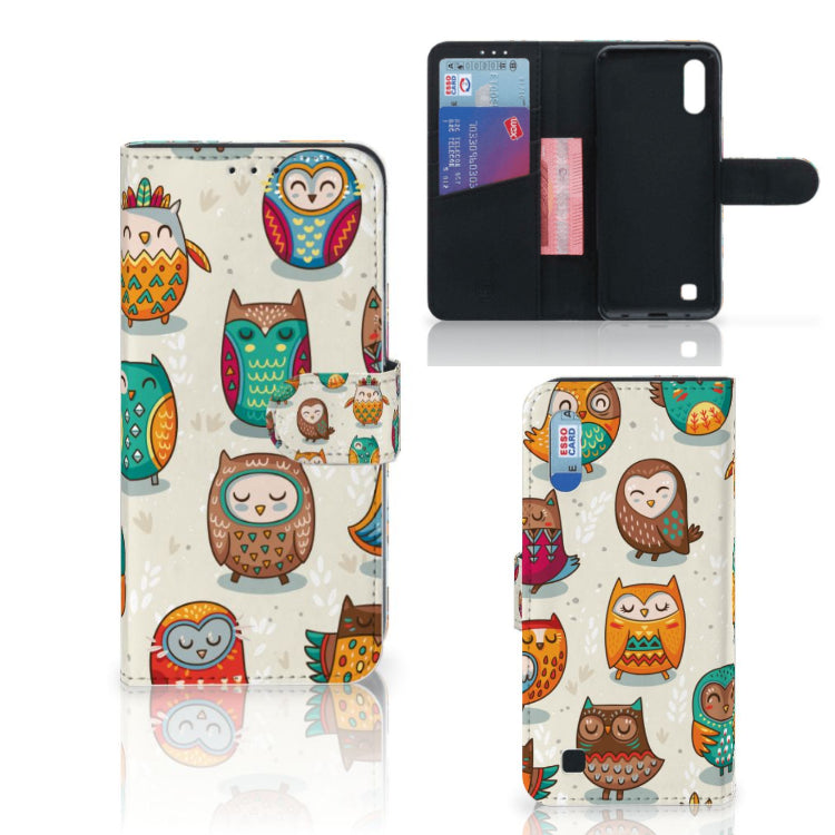 Samsung Galaxy M10 Telefoonhoesje met Pasjes Vrolijke Uilen