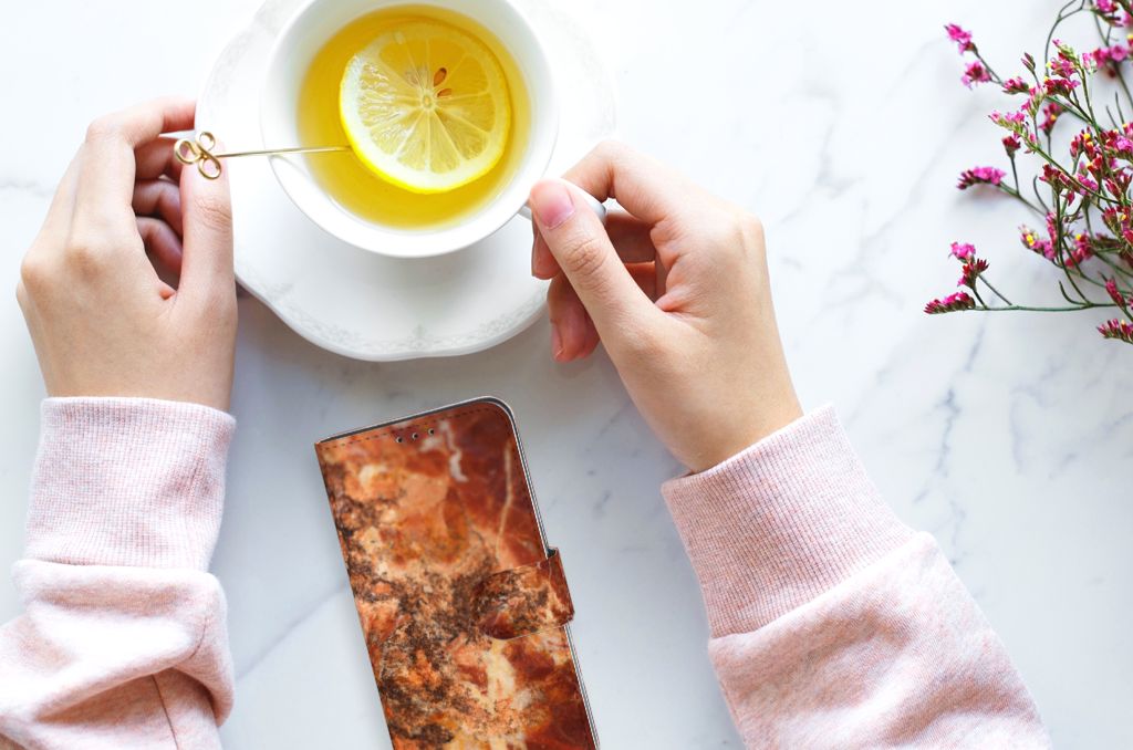 Samsung Galaxy M10 Bookcase Marmer Bruin