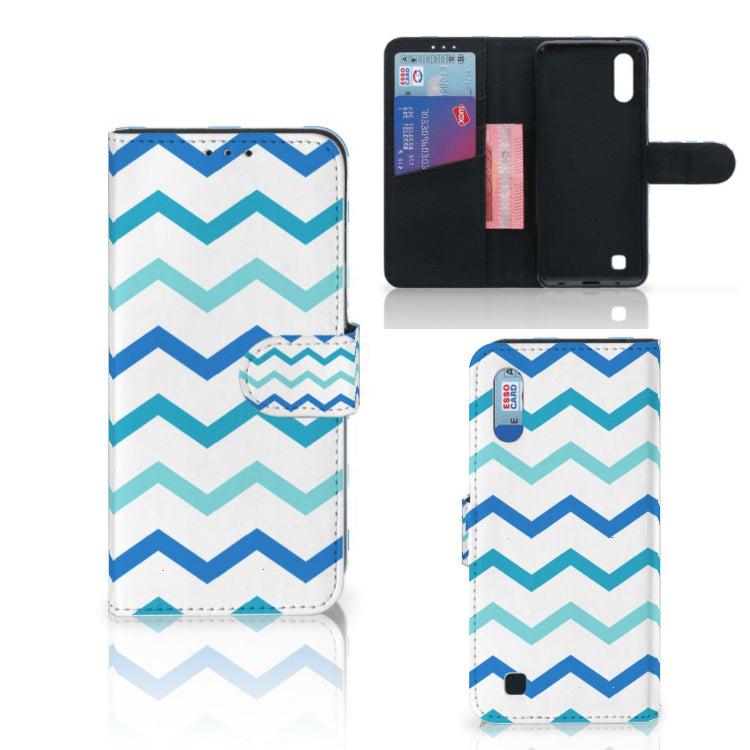 Samsung Galaxy M10 Telefoon Hoesje Zigzag Blauw