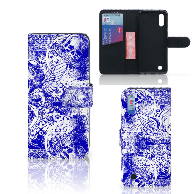 Telefoonhoesje met Naam Samsung Galaxy M10 Angel Skull Blauw