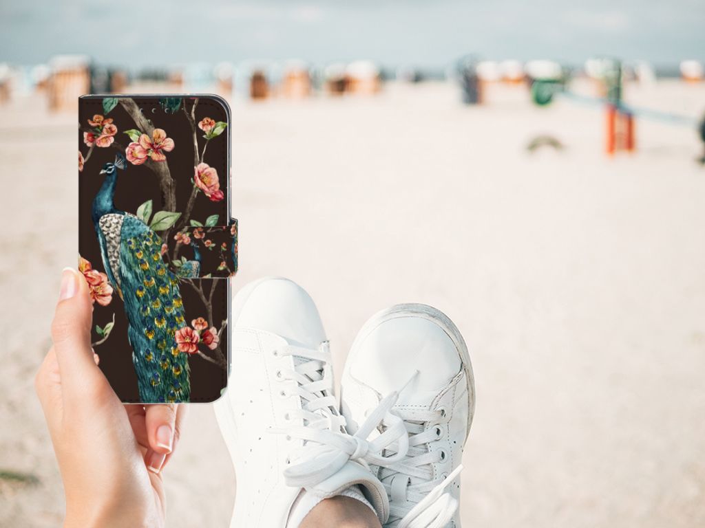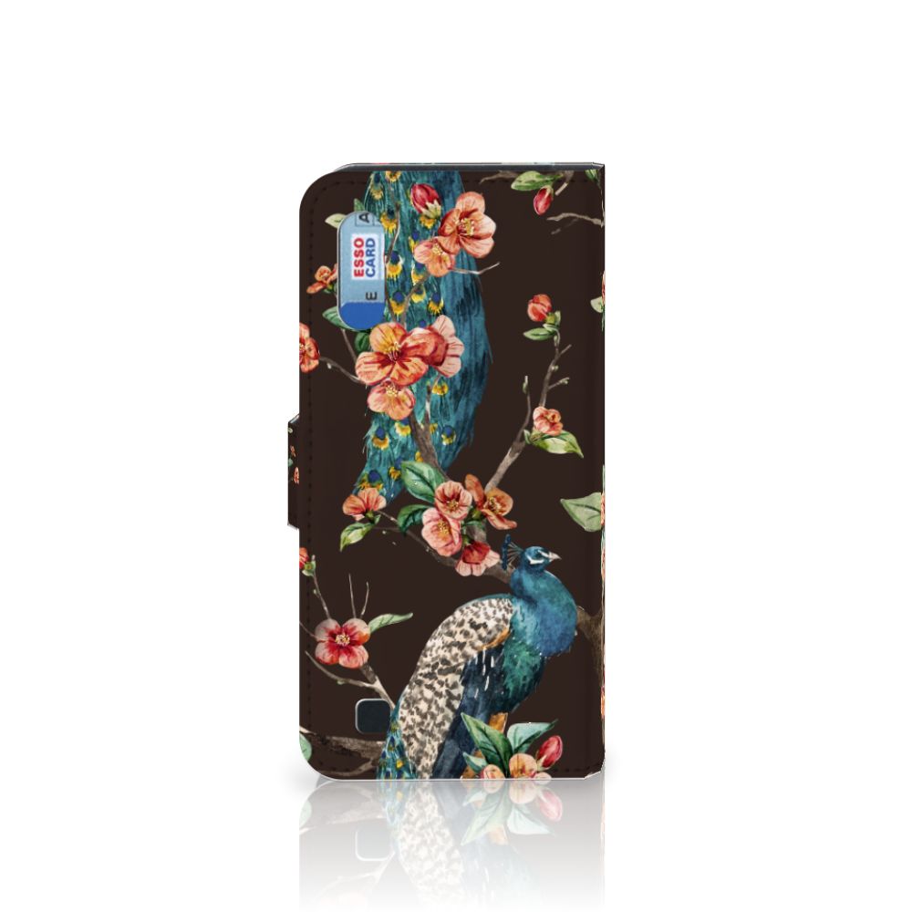 Samsung Galaxy M10 Telefoonhoesje met Pasjes Pauw met Bloemen