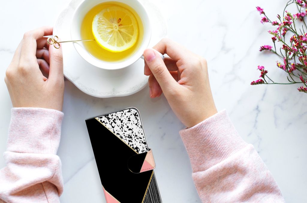 Samsung Galaxy M10 Book Case Zwart Roze Vormen