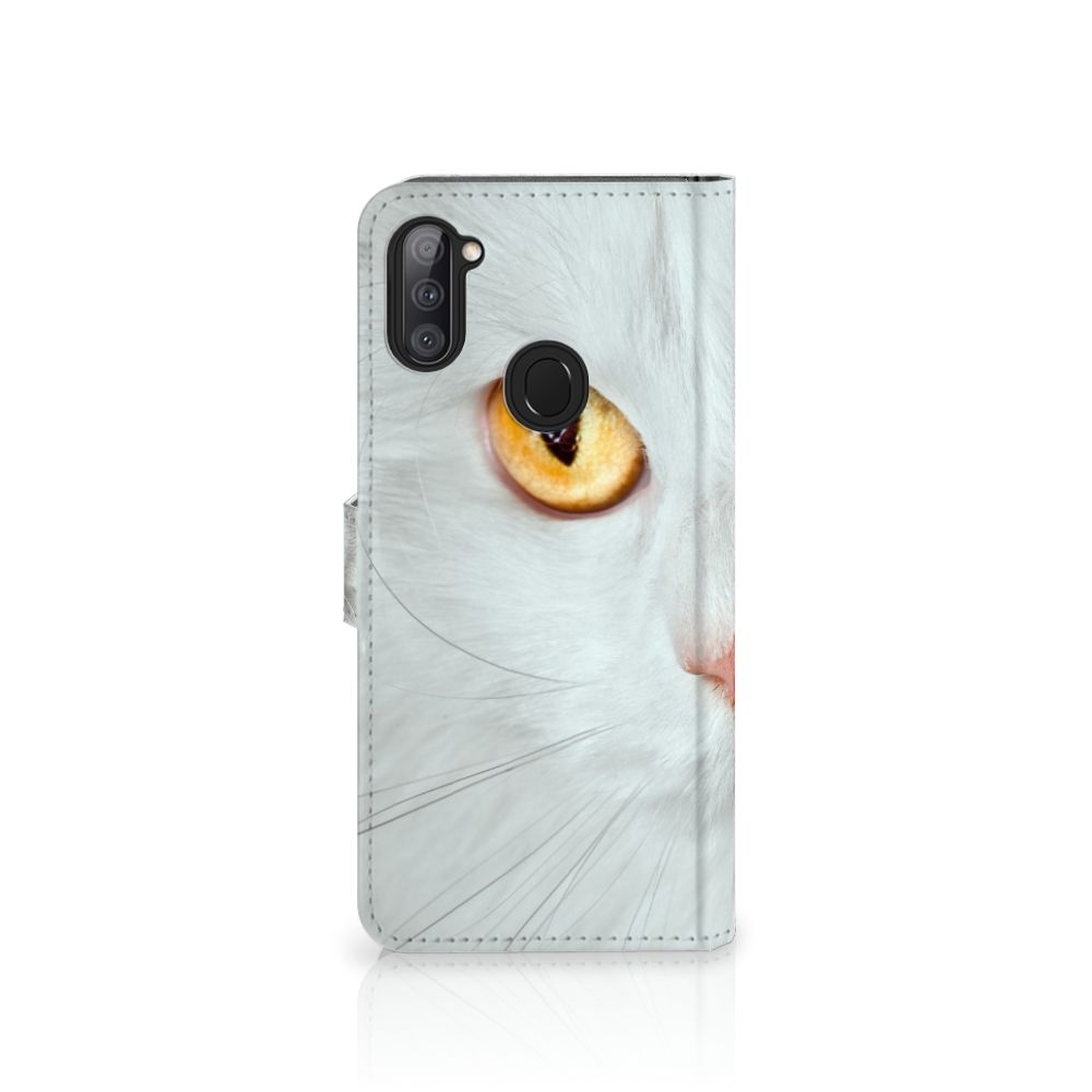Samsung Galaxy M11 | A11 Telefoonhoesje met Pasjes Witte Kat