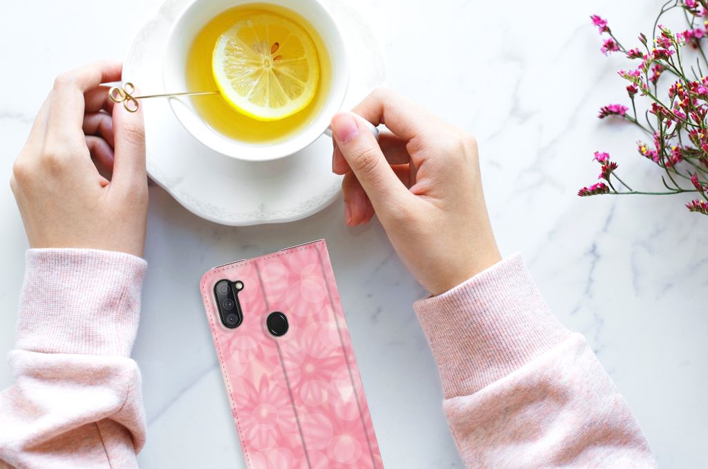 Samsung Galaxy M11 | A11 Portemonnee Hoesje Flowers Pink DTMP