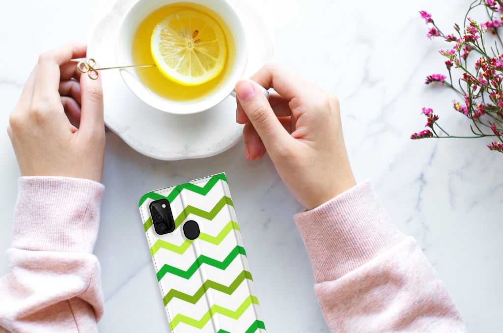 Samsung Galaxy M30s | M21 Hoesje met Magneet Zigzag Groen