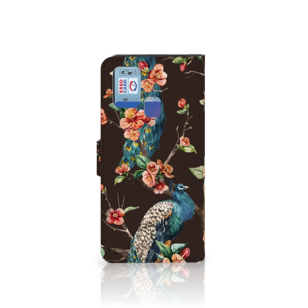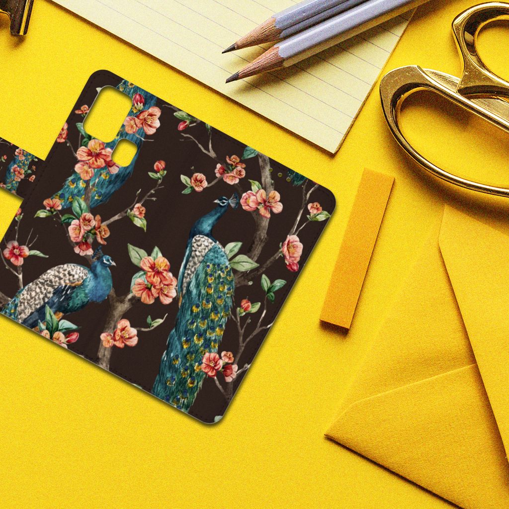 Samsung Galaxy M31 Telefoonhoesje met Pasjes Pauw met Bloemen