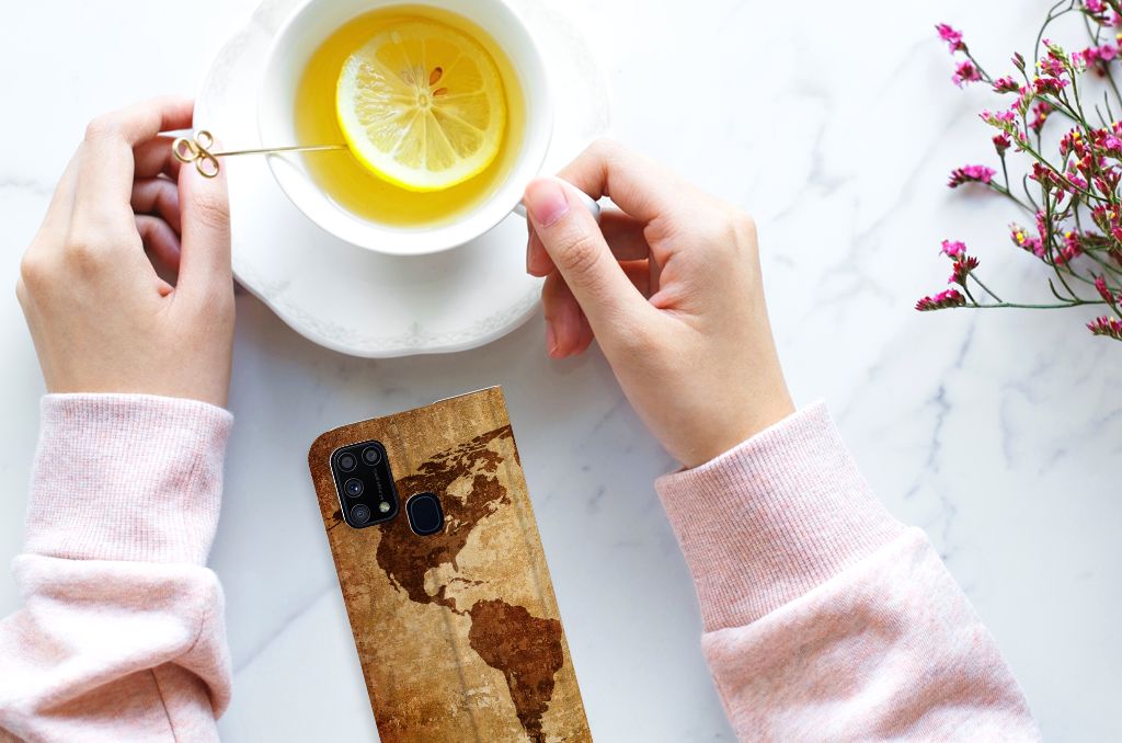 Samsung Galaxy M31 Book Cover Wereldkaart