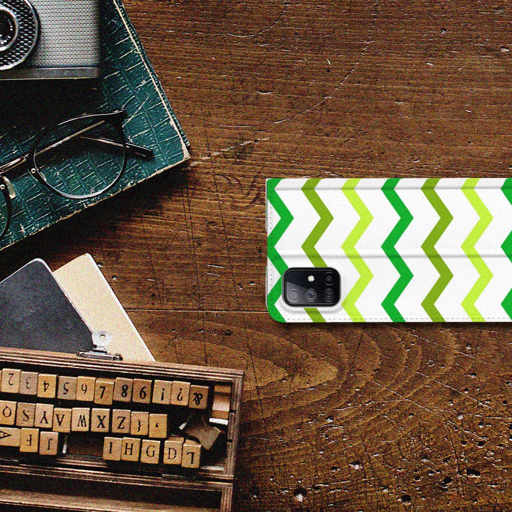 Samsung Galaxy M51 Hoesje met Magneet Zigzag Groen