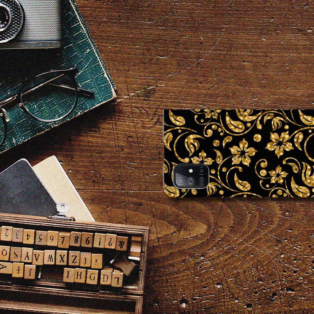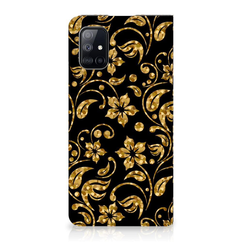 Samsung Galaxy M51 Smart Cover Gouden Bloemen