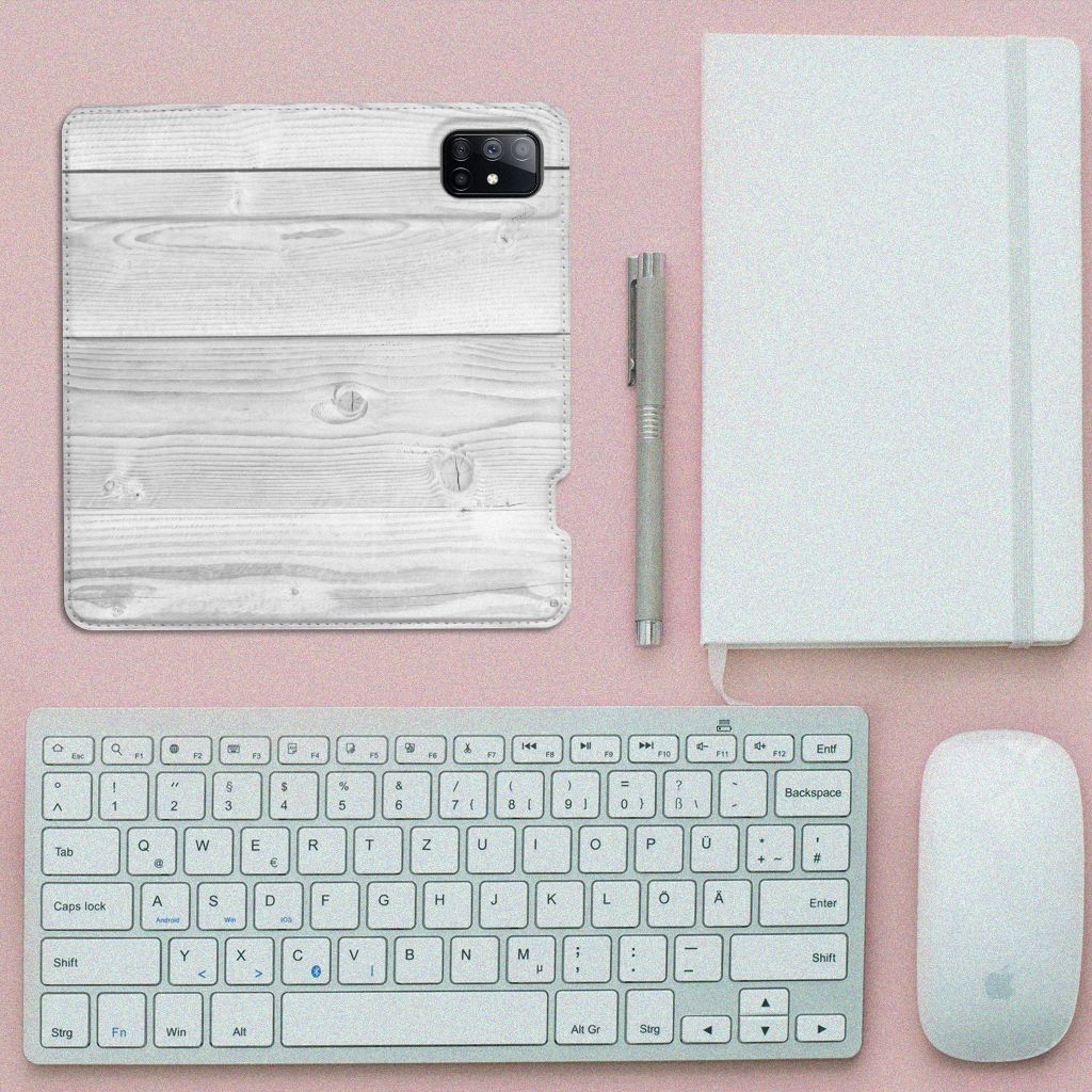 Samsung Galaxy M51 Book Wallet Case White Wood