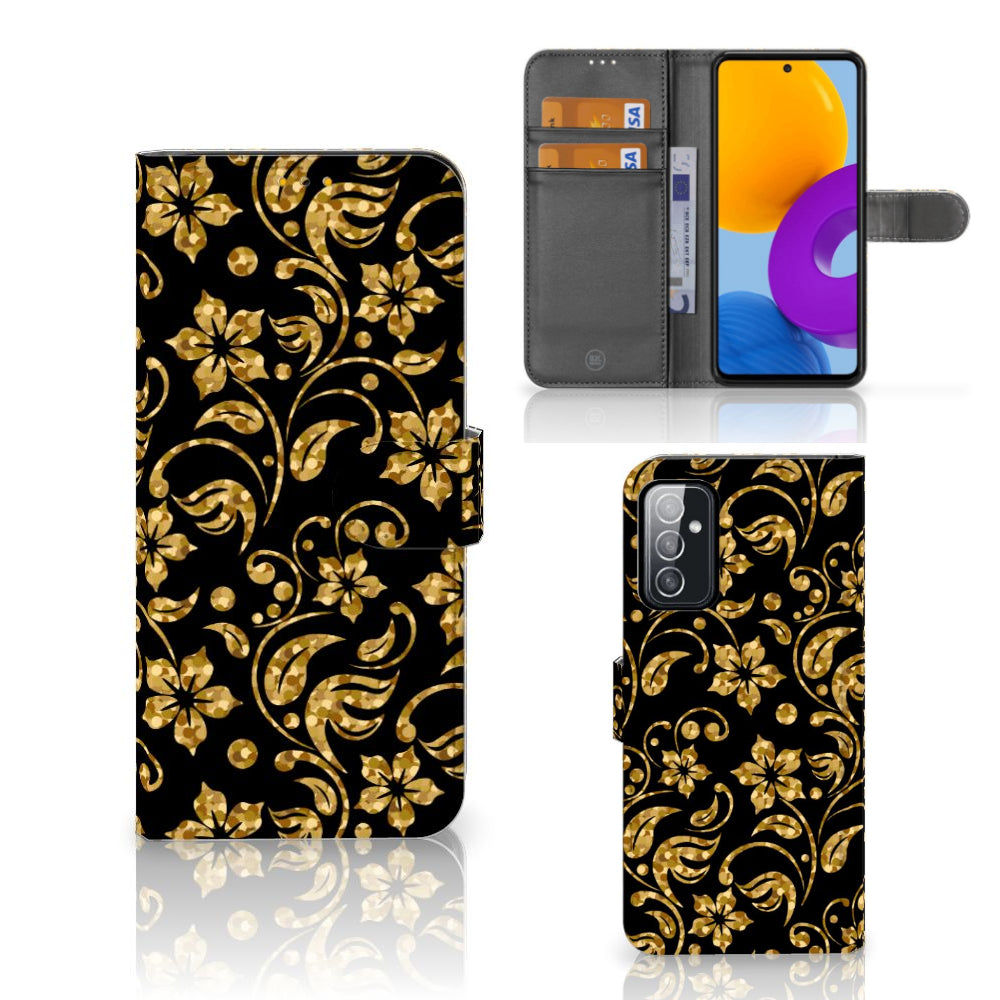 Samsung Galaxy M52 Hoesje Gouden Bloemen