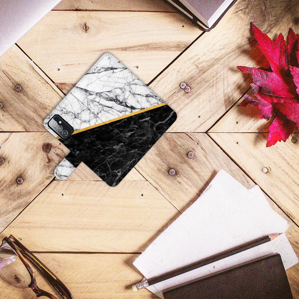 Samsung Galaxy M52 Bookcase Marmer Wit Zwart - Origineel Cadeau Man