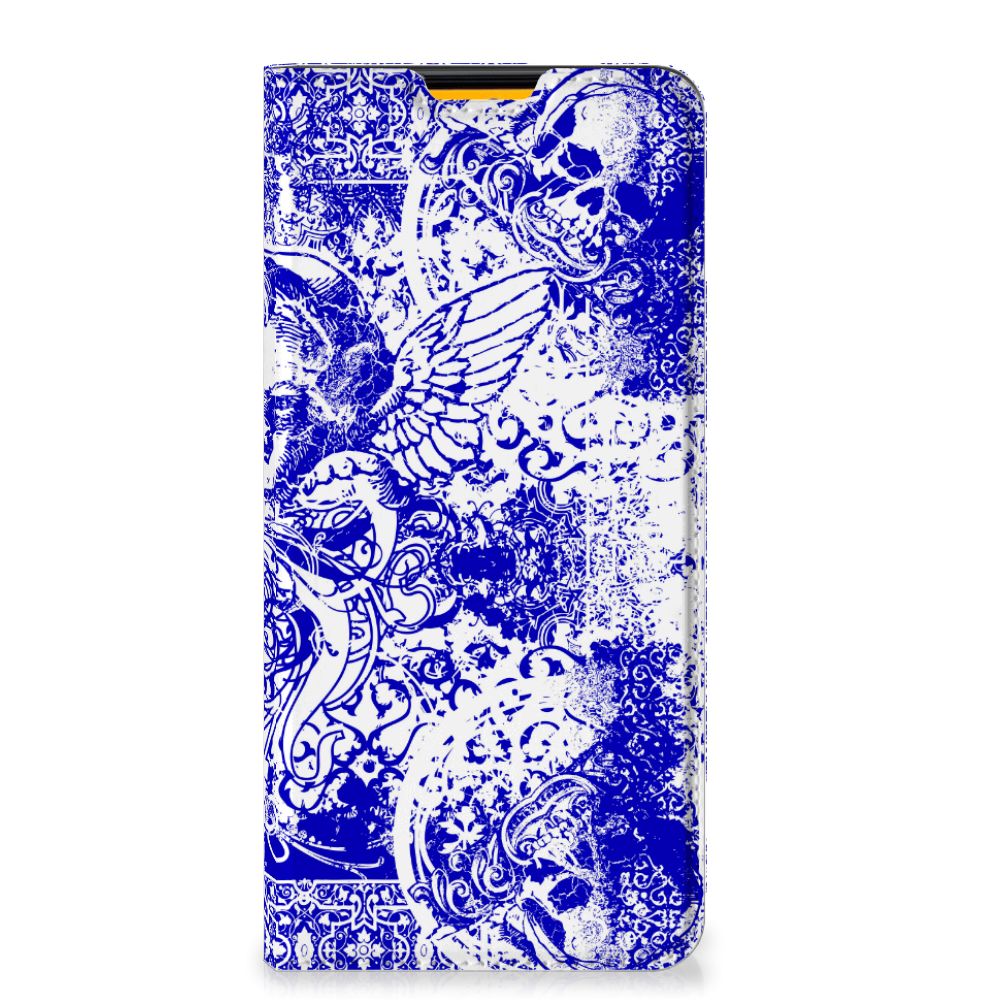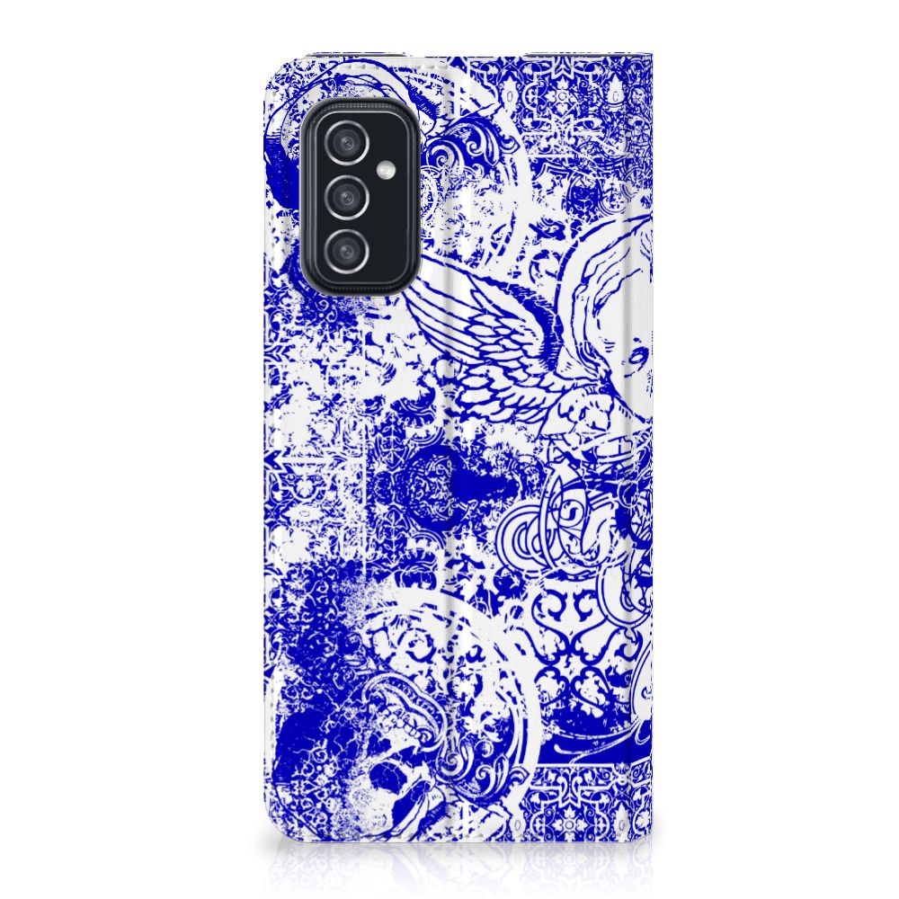 Mobiel BookCase Samsung Galaxy M52 Angel Skull Blauw